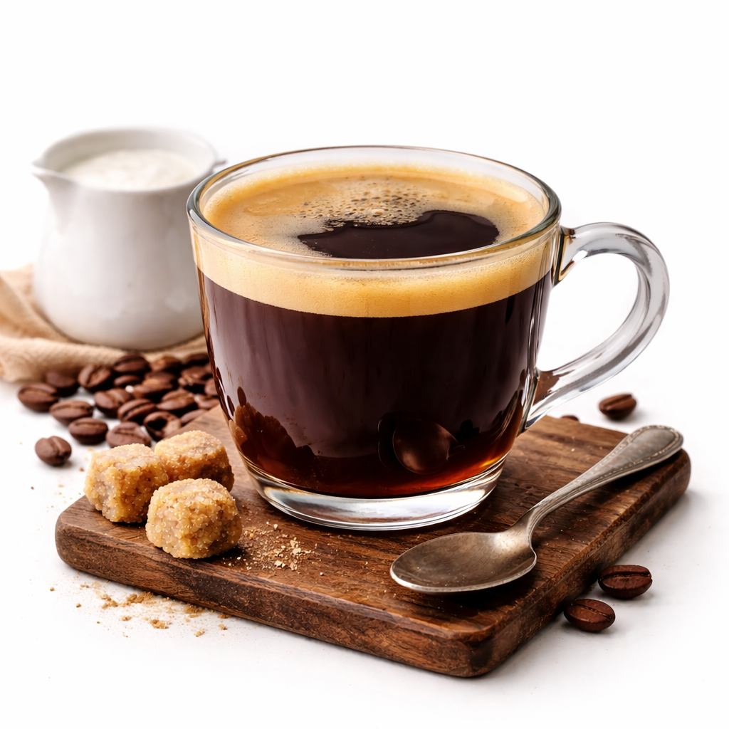 Espresso scurt, foarte concentrat și aromat. Gramaj: 30 ml