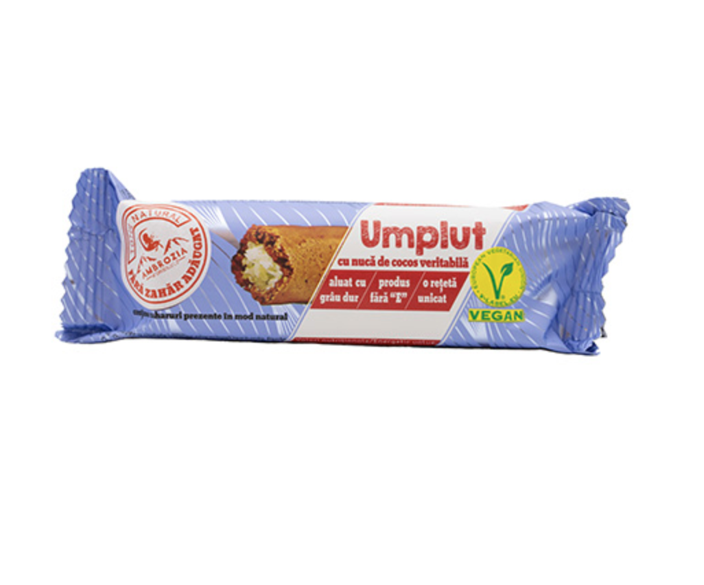 Baton vegan cu nucă de cocos și cacao, realizat manual din ingrediente naturale. Gramaj: 60 g