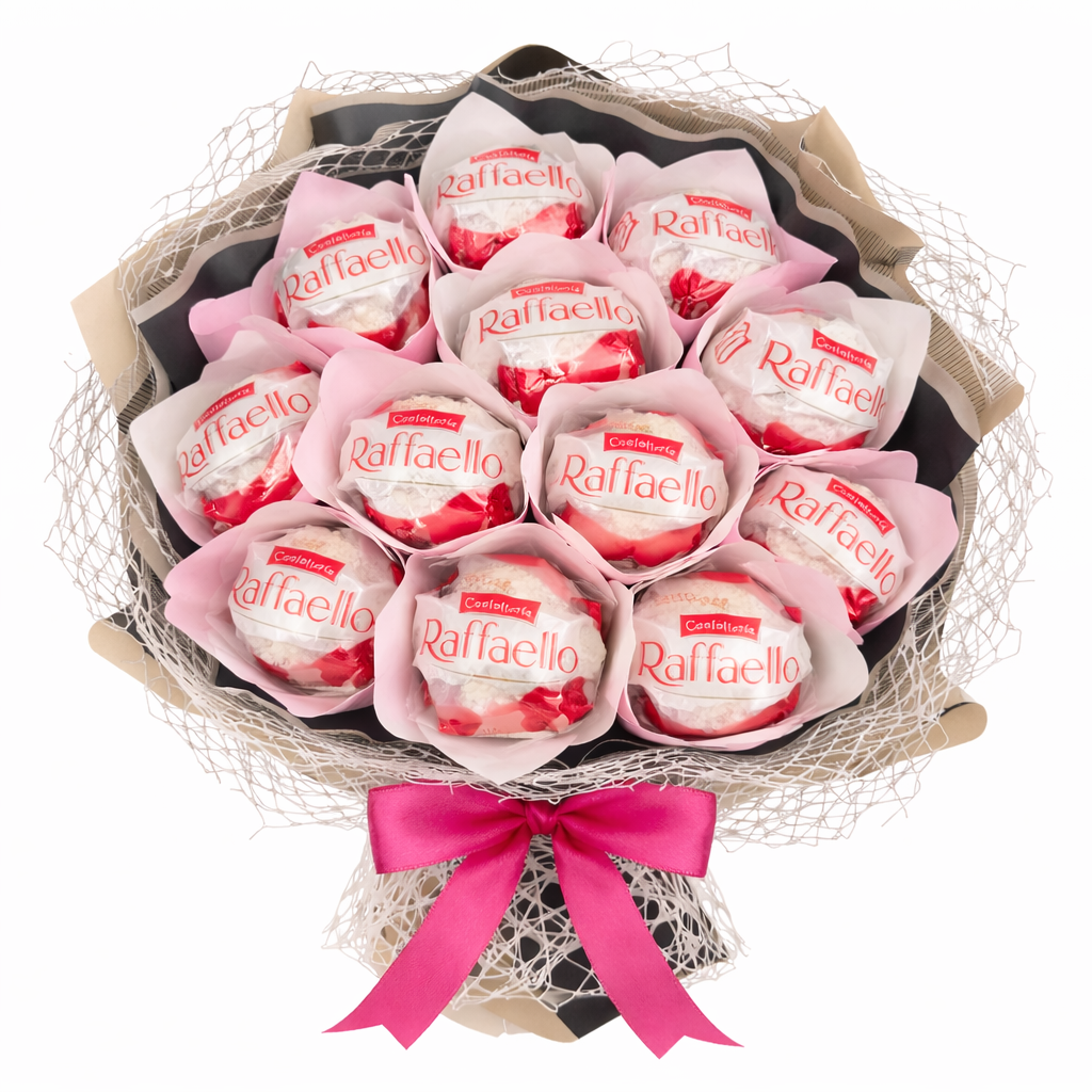 Buchet mixt ce îmbină finețea Raffaello cu intensitatea Ferrero Rocher, pentru un echilibru perfect între delicat și sofisticat.