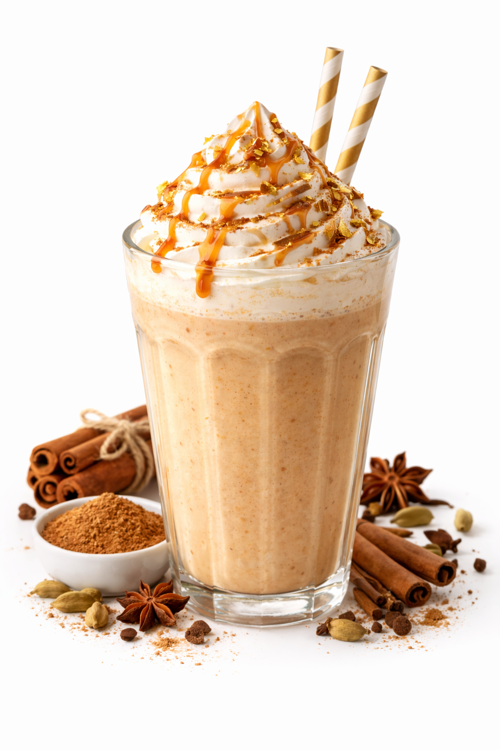 Milkshake aromat, cu condimente chai și note calde de scorțișoară, ideal pentru iubitorii de arome exotice. Gramaj: 350 ml